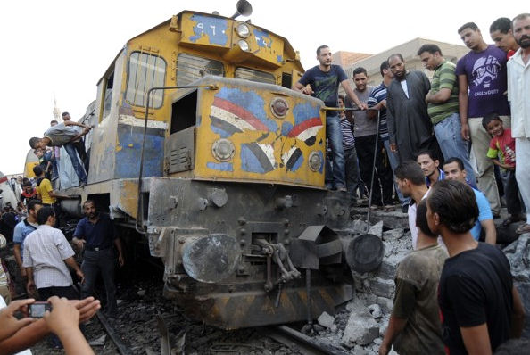 The security official said some of the passengers in Giza, Cairo’s twin city, were enraged that they had to wait for more than 30 minutes on their train to allow another train to pass. Some of the restless passengers placed logs and rocks on the rails of the track of the other train that was holding theirs up. When the speeding train approached, the debris caused it to sideswipe another train. Three cars of the fast-moving train overturned.