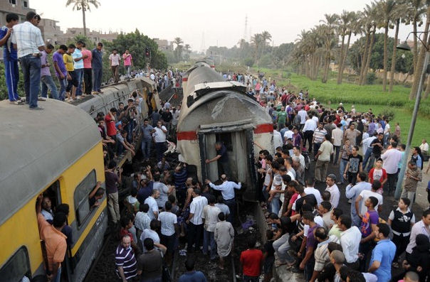 The security official said some of the passengers in Giza, Cairo’s twin city, were enraged that they had to wait for more than 30 minutes on their train to allow another train to pass. Some of the restless passengers placed logs and rocks on the rails of the track of the other train that was holding theirs up. When the speeding train approached, the debris caused it to sideswipe another train. Three cars of the fast-moving train overturned.