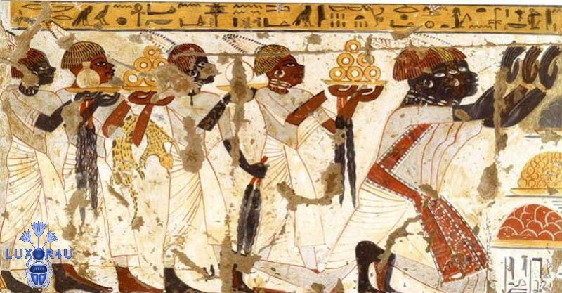 Hunting scenes similar to those found in Tutankhamun’s tomb are also depicted on walls as well as scenes showing Huy being greeted by high priests and among his family.