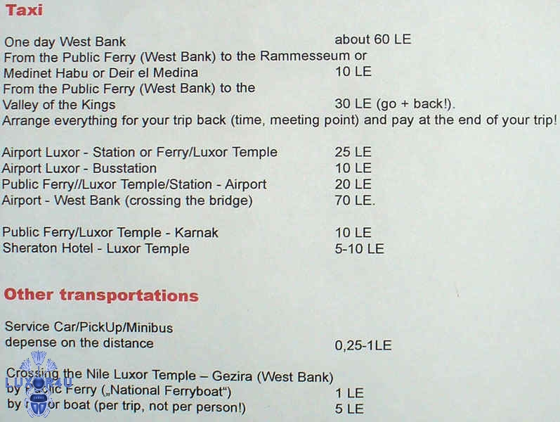 Taxi rates West Bank 2007